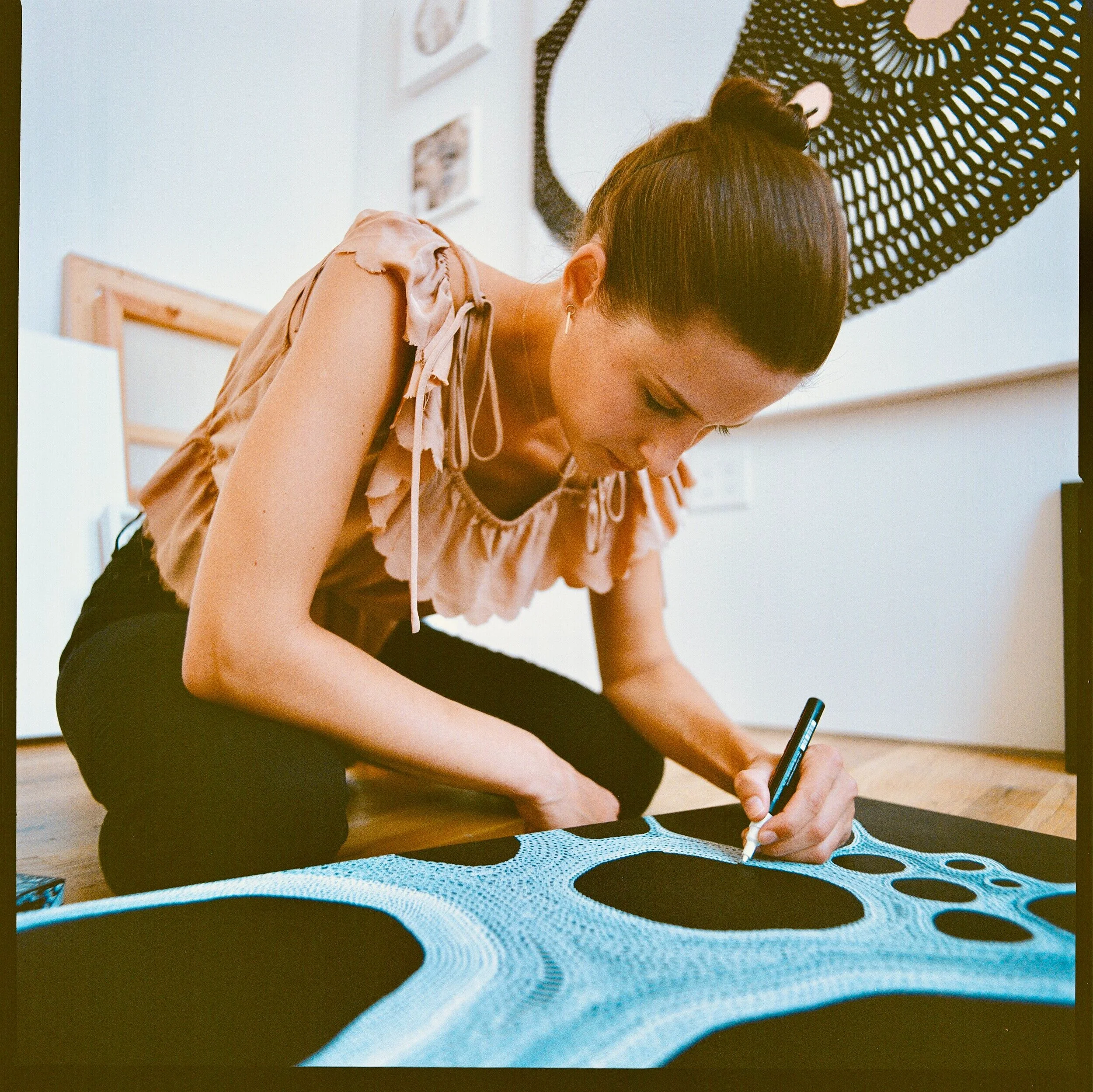 Diana Zabielaite is a Lithuanian born visual artist who grew up in the United States. She holds a Bachelor degree in Fine Arts from Columbia College Chicago, where she focused on painting, drawing, ceramics and jewelry-making. Through the mediums of watercolor, ink, and pen, she creates eclectic work that resembles some of the most beautiful wonders of this world, such as - crystals, fractals, cells and the stars. She explores the state of being present and adaptable while working with the fluidity and sensitivity of water and creates artwork that reflects the mystery of nature.